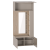 Модуль "Вешалка с зеркалом" выполнен из ЛДСП цвета Дуб натуральный светлый / Капучино. Верхняя полка модуля имеет встроенный газлифт и позволит разместить объемный чемодан. Вертикальный ряд полок со светодиодной подсветкой выполнен на правую сторону, при желании можно распахнуть створку, прикрывающую ряд. Прочные крючки выполнены из белого матового металла.