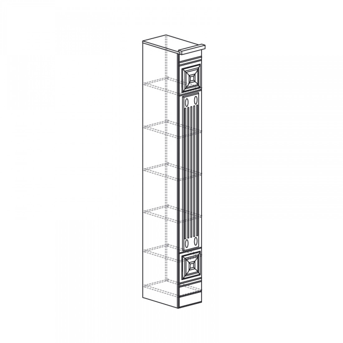Фасады: МДФ, декор – дуб оксфорд серый, патина, зеркало с фацетом