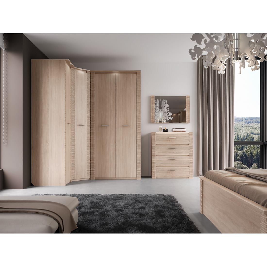 В коллекции Элана есть модули для гостиной, спальни и прихожей.