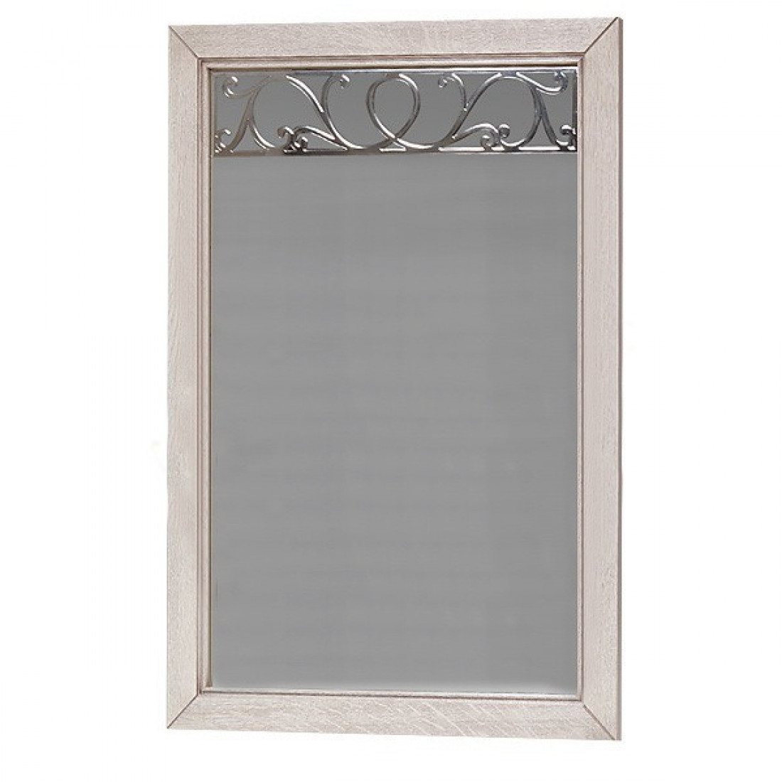 Классическое прямоугольное настенное зеркало для спальни из коллекции "Оскар" в простой раме из массива дуба. Декорировано растительным узором, окрашено в оттенок "Белая эмаль с патиной".